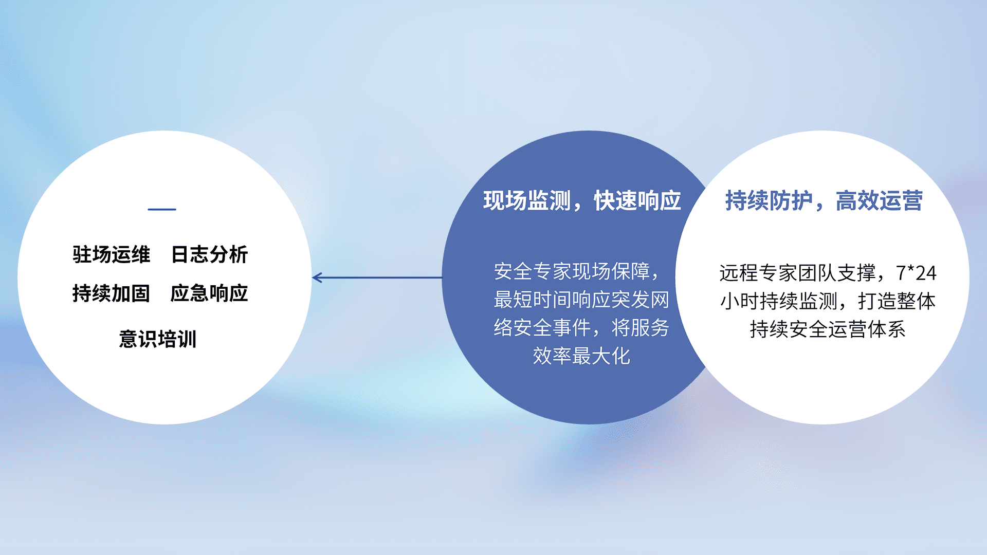 针对客户行业特性,,,提供专属的一站式安全管理服务,,帮助客户全面感知网络空间威胁,,,,通过安全专家的线上、、、线下防护支持,,实现风险闭环,,,将安全保障常态化,,,为客户打造常态化安全运维运营服务。。。